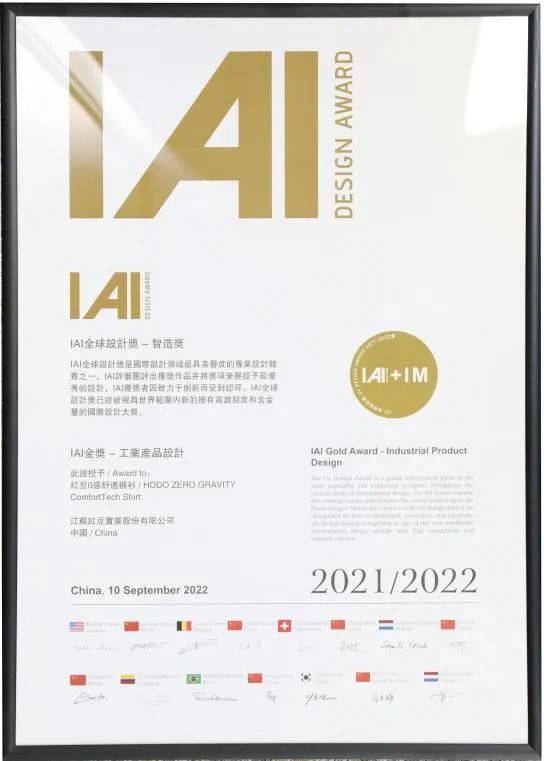 IAI Design Awards (IAI全球设计奖)由亚太设计师联盟举办,以严格的评审体系和高质量的评审标准著称,是亚太地区乃至国际最具国际影响力和美誉度设计大奖之一。作为亚洲最具创新力的大奖,IAI设计奖已经被视为世界范围内新的拥有高识别度和含金量的国际设计大奖。据悉,由于在舒适上实现了重大突破,红豆0感舒适衬衫揽获四国大奖――法国双面神国际设计大奖、美国muse大奖、意大利A奖、芭莎年度男士衬衫奖,实力获多方权威认证。此次红豆0感舒适衬衫斩获IAI设计金奖殊荣,代表着红豆男装的设计理念再次得到了业界人士的专业认可。